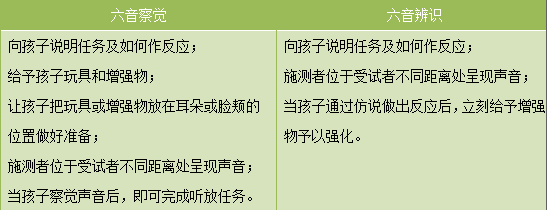 <span style="font-size:16px;"> 一、“林氏六音”是哪六音?為什么?</span></p><p><span style="font-size:16px;"> 林氏六音包括:m u a i sh s</span></p><p><span style="font-size:16px;"><br /></span></p><p style="text-align: center;"><span style="font-size:16px;"><img src="/upfiles/201803241040224081.jpg" width="640" alt="" /> </span></p><p><span style="font-size:16px;"><br /></span></p><p style="text-align: center;"><span style="font-size:16px;"><img src="/upfiles/201803241039414164.png" width="640" alt="" /><br /></span></p><p style="text-align: center;"><span style="font-size:16px;"><br /></span></p><p></p><p><span style="font-size:16px;"> 由常見聲音的頻譜圖和六音的頻率范圍我們可以發(fā)現(xiàn),林氏六音覆蓋的頻率范圍非常廣,如果這六個(gè)音能夠明確地辨識(shí),則日常生活接觸到的大部分語言和聲音都不成問題。家長(zhǎng)們一定要仔細(xì)觀察孩子對(duì)這六個(gè)音的反應(yīng)并認(rèn)真記錄,及時(shí)、準(zhǔn)確地和聽力師說明,會(huì)對(duì)調(diào)配助聽設(shè)備有很大幫助。</span></p><p><span style="font-size:16px;"> 比如,在實(shí)際測(cè)試中助聽器如果高頻補(bǔ)償不到位,會(huì)出現(xiàn)s、sh辨識(shí)不清的情況,人工耳蝸植入者往往高頻聽得很好,但要注意低頻的i、m是否會(huì)混淆。</span></p><p><span style="font-size:16px;"><br /></span></p><p style="text-align: center;"><span style="font-size:16px;"><img src="/upfiles/201803241039518051.png" width="640" alt="" /><br /></span></p><p style="text-align: center;"><span style="font-size:16px;"><br /></span></p><p></p><p><span style="font-size:16px;"> 二、何時(shí)開始練習(xí)林氏六音?</span></p><p><span style="font-size:16px;"> 六音測(cè)試包括察覺和辨識(shí),察覺最主要的方法是“六音聽放”,辨識(shí)的方法有指認(rèn)、仿說、寫等。一歲以上的孩子就可以開始練習(xí)“六音聽放”了,有一定言語基礎(chǔ)后可以聽放和仿說結(jié)合或交替。</span></p><p><span style="font-size:16px;"> 在家中應(yīng)該天天堅(jiān)持做林氏六音測(cè)試,測(cè)試時(shí)家庭環(huán)境要保持安靜,要選擇孩子戴上助聽設(shè)備后且專注力比較好的時(shí)候,時(shí)間不宜過長(zhǎng)。</span></p><p><span style="font-size:16px;"> 三、六音聽放的基本步驟與技巧</span></p><p><span style="font-size:16px;"> 1、如果是初學(xué)者,做之前要向孩子說明任務(wù)及如何作反應(yīng)。(小齡的孩子可能聽不懂,需要再請(qǐng)另一位家長(zhǎng)配合做示范。)</span></p><p><span style="font-size:16px;"> 2、施測(cè)者位于孩子聽力較好的耳朵的側(cè)面或側(cè)后方——給孩子玩具或者增強(qiáng)物,讓孩子把增強(qiáng)物放在耳朵或臉頰的位置做好準(zhǔn)備。(戴耳蝸的孩子要避免磁性玩具。)</span></p><p><span style="font-size:16px;"> 3、等孩子準(zhǔn)備好,再逐一發(fā)音——當(dāng)孩子對(duì)聲音做出反應(yīng)后,要立刻給予鼓勵(lì)。</span></p><p><span style="font-size:16px;"> 4、記錄孩子對(duì)六音的反應(yīng)(很重要,尤其是聽不清楚或發(fā)錯(cuò)的音,把發(fā)錯(cuò)的音寫在正確的音后面記錄后可以拿給康復(fù)老師和聽力師作參考。)</span></p><p><span style="font-size:16px;"> 發(fā)音要求與技巧:</span></p><p><span style="font-size:16px;"> 1、一次一個(gè)刺激音,從最容易查覺的音(就是a)開始發(fā);</span></p><p><span style="font-size:16px;"> 2、以不規(guī)則的時(shí)間間隔發(fā)音(否則聰明的孩子很容易找到規(guī)律,測(cè)試會(huì)不準(zhǔn)確);</span></p><p><span style="font-size:16px;"> 3、以正常的說話音量發(fā)音,不必刻意提高音量或加重語氣(家長(zhǎng)常會(huì)測(cè)試時(shí)不自覺提高音量,大聲聽得清,正常音量聽不清,則失去了測(cè)試的意義);</span></p><p><span style="font-size:16px;"> 4、使用正常音長(zhǎng)控制,不應(yīng)故意拉長(zhǎng)或刻意縮短;</span></p><p><span style="font-size:16px;"> 5、發(fā)音時(shí)不要給予孩子視覺或觸覺線索,遮口后,發(fā)音完手勿立刻放下;</span></p><p><span style="font-size:16px;"> 其他要注意的事:</span></p><p><span style="font-size:16px;"> 1、在孩子精神飽滿,專注力好的時(shí)候進(jìn)行,結(jié)果的可信度會(huì)高;</span></p><p><span style="font-size:16px;"> 2、測(cè)試者不能一邊發(fā)音, 一邊帶孩子聽放(必須有一個(gè)人做示范,除非孩子年齡足夠理解在做什么);</span></p><p><span style="font-size:16px;"> 3、明確六音測(cè)試目標(biāo),不應(yīng)邊測(cè)試邊進(jìn)行其他領(lǐng)域目標(biāo);</span></p><p><span style="font-size:16px;"> 4、六音測(cè)試時(shí)間不宜過長(zhǎng)。</span></p><p><span style="font-size:16px;"> 四、增強(qiáng)物---玩具的選擇</span></p><p><span style="font-size:16px;"> 選擇原則:</span></p><p><span style="font-size:16px;"> 1、趣味性高,可引起孩子興趣;</span></p><p><span style="font-size:16px;"> 2、符合孩子動(dòng)作發(fā)展,容易抓握;</span></p><p><span style="font-size:16px;"> 3、簡(jiǎn)單易操作,可在短時(shí)間內(nèi)得到增強(qiáng);</span></p><p><span style="font-size:16px;"> 4、能夠保證一次六音測(cè)試持續(xù)完成。</span></p><p><span style="font-size:16px;"> 最重要的是要了解自己的孩子喜歡什么樣的玩具,多嘗試與開發(fā),否則天天做同樣的孩子很容易厭煩的。例如:套圈/套塔、積木、嵌板、拼圖、蓋印章、投球、活動(dòng)、釣魚/撈魚活動(dòng)、串珠等等。</span></p><p><span style="font-size:16px;"> 更多詳情請(qǐng)