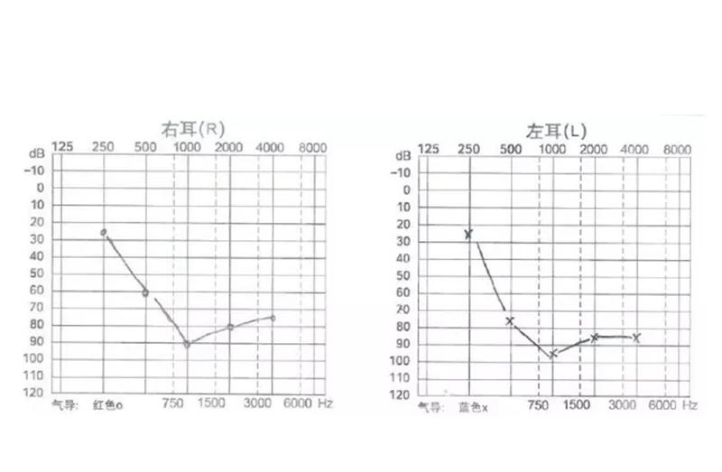 如果:自小雙耳神經(jīng)性聽力損失,無其它疾病。并且聽力圖如下: