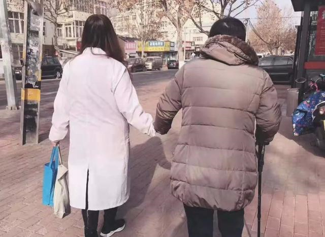 青島的驗配師送獨居老人回家。