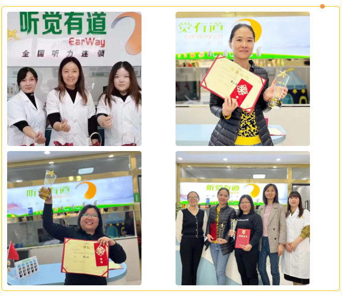 她們如今是助聽器驗配師中的佼佼者,將“有聽有情有道”的企業理念融會貫通,落到實處,為聽覺有道增添了濃墨重彩的一筆!優秀門店,既是對她們的鼓勵和肯定,更是公司對她們的期許,她們就像一把號角,將聽覺有道的理念和精神傳遞下去!