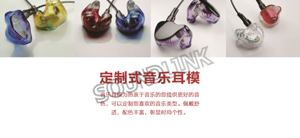 音樂耳模為熱衷于音樂的您提供更好的音 色,可以定制您喜歡的音樂類型。佩戴舒 適,配色豐富,彰顯時尚個性。